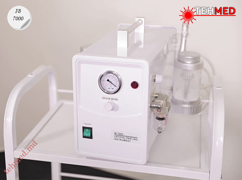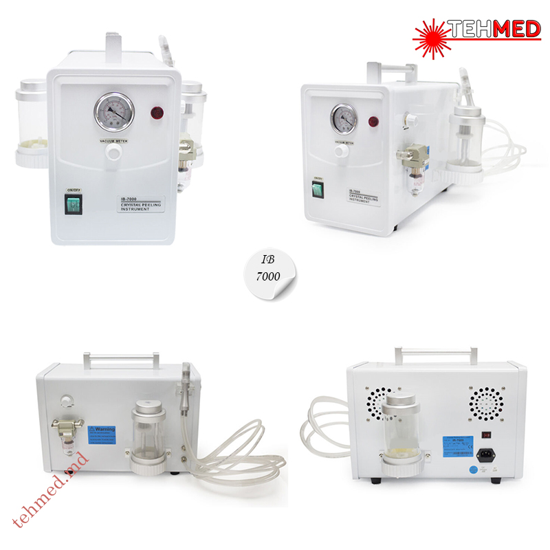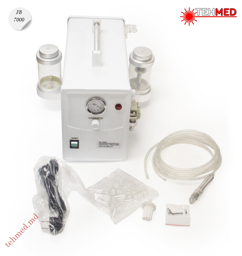Аппарат для кристаллической микродермабразии IB-7000 применяется в косметологии для проведения процедуры пескоструйной дермабразии. Компрессор двойного действия генерирует отрицательное и положительное давление, то есть втягивает и распыливает поток воздуха. Аппарат пескоструйной дермабразии IB-7000 оснащен металлическим корпусом ,что говорит о его прочности и надежности. Для удобства во время транспортировки и переноса аппарата предназначена ручка, которая размещается сверху на корпусе. Скорость потока кристалов и интенсивность вакуума в аппарате регулируется. Для контроля силы вакуума служит манометр.