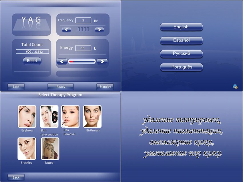 Область применения: удаление татуировок, удаление пигментации, омоложение кожи, уменьшение пор кожи, Карбоновый пилинг.