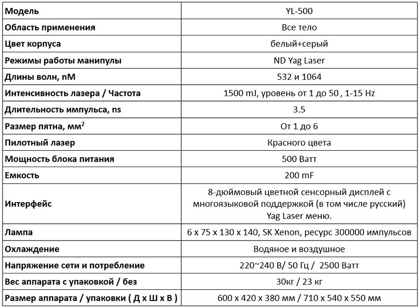 Аппарат для удаления татуировок ND YAG лазер YL-500