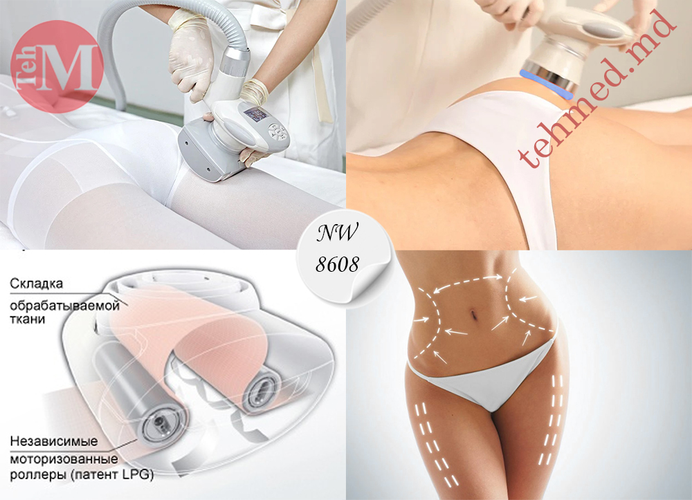 Аппарат модели NW-8608 представляет собой аппарат для коррекции фигуры, принцип действия которого заключается в вакуумно-механическом воздействии на кожу и ткани организма (LPG массаж). Аппарат позволяет выполнять процедуры для следующих целей: избавляет от лишних подкожно-жировых отложений, сокращает объемы, уменьшает проявления целлюлита и обновляет кожу тела.