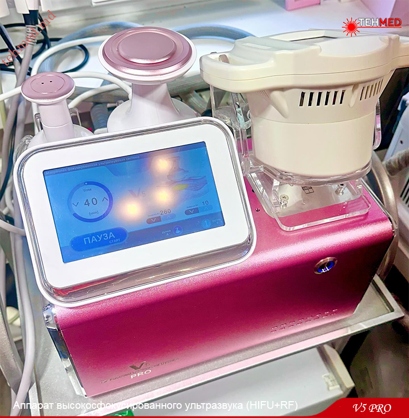 Аппарат высокосфокусированного ультразвука (HIFU+RF) V5 PRO (GK-308) совмещает в себе функции высокосфокусированного ультразвукового воздействия с радиочастотным излучением. Эти функции эффективно помогают избавиться от жировых отложений на сложных участках, таких как: галифе, «ушки» на боках, отложения на бедрах и других участках. Процедуры имеют долгосрочный эффект и позволяют добиться коррекции фигуры за 4 недели.