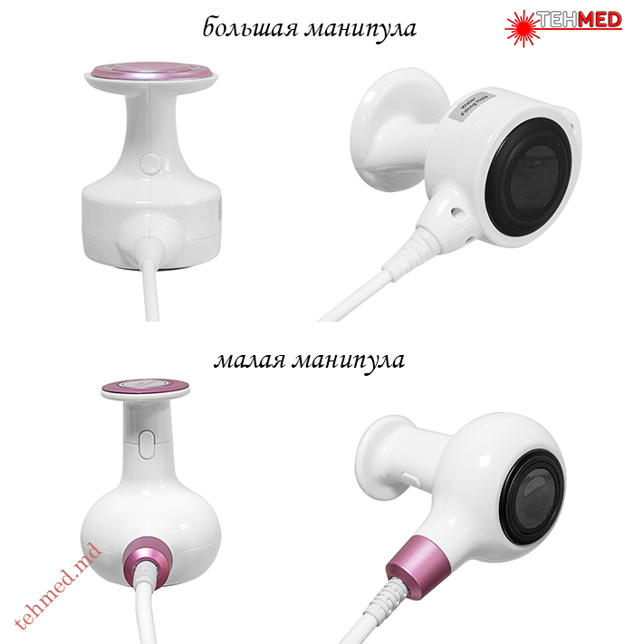 Первая и Вторая манипулы совмещают в себе HIFU и RF излучения, уровень которого можно менять во время процедуры, отличаются по размерам и подходят для разных областей тела.
