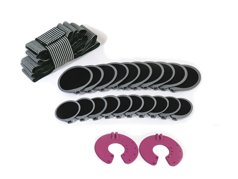 В комплект миостимулятора входят 20 электродов для тела многоразового действия, по 2 электрода для шеи и груди, бинты для крепления.