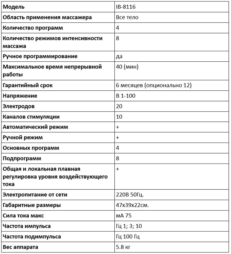 IB-8116 это профессиональный аппарат для миостимуляции.