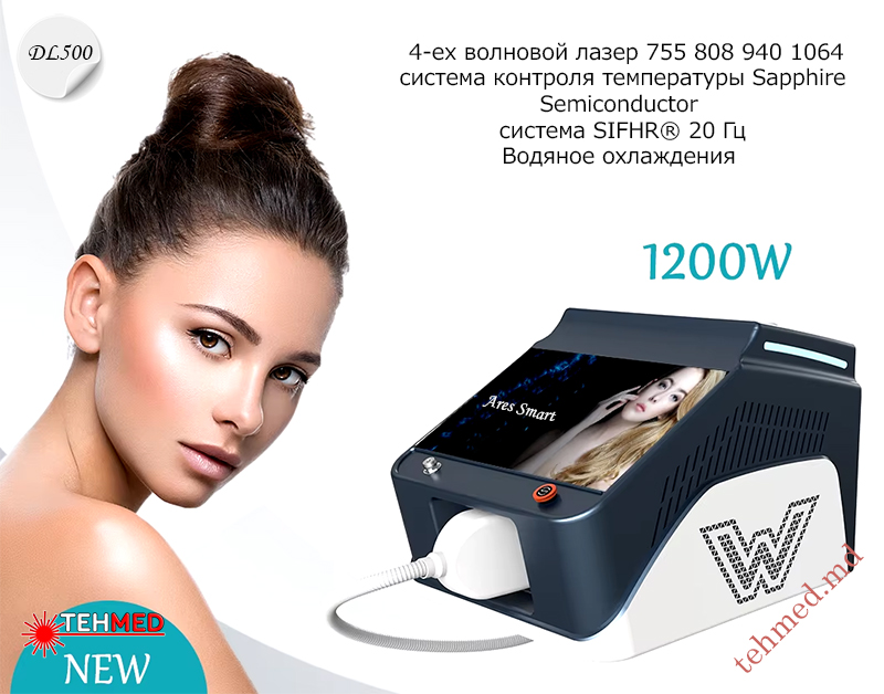 Диодный лазер для эпиляции и омоложения кожи Ares Smart DL500 - свежая модель , произведена в 2024 ом году . Это 4-волновой лазер 755 nm, 808 nm , 940 nm , 1064 nm.