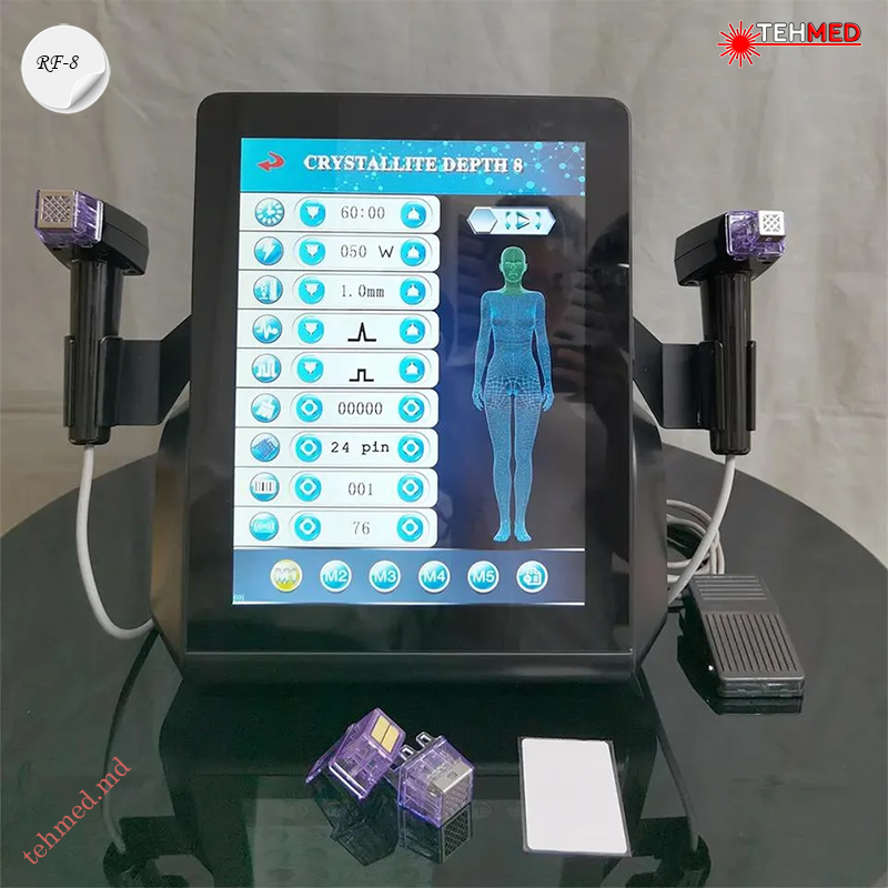 Настольный аппарат микроигольчатого RF-лифтинга RF-8 это процедура омоложения, которая запускает процесс обновления кожи за счет воздействия радиочастотных импульсов, нагревающих глубокие слои кожи. RF-лифтинг проводится с помощью специальных насадок с микроиглами.